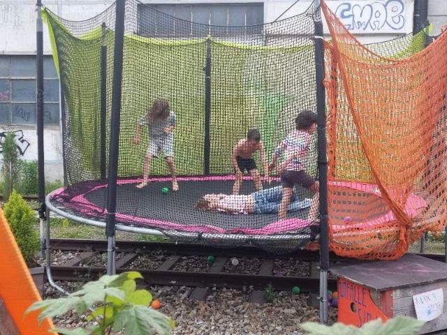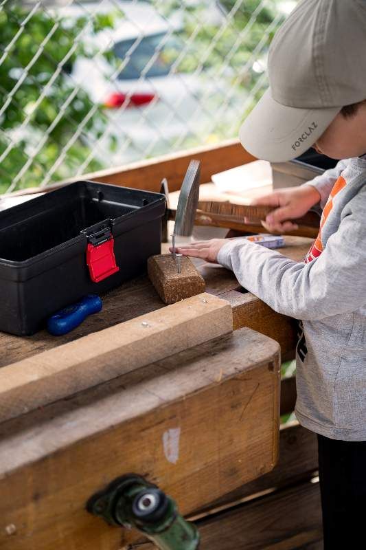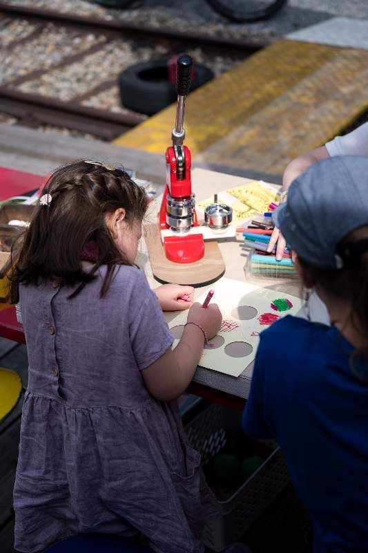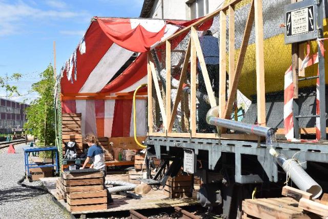 Auch Kinder kommen im Dreispitz auf ihre Rechnung: Auf einer selbst gestalteten Baustelle können sie mit Holz schaffen, basteln, chillen, sich abkühlen und malen. Lanciert von Robi Spielaktionen soll der Kindergleiskreis für Schulklassen, Tagesstrukturen und Familien zur Verfügung stehen.